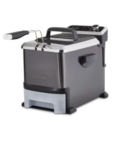 PADERNO Auto-Drain Deep Fryer W/ Digital Display & Oil Filter, Black Stainless Steel, 3.5L