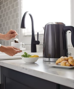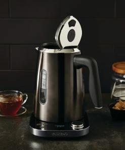 PADERNO Cordless Programmable Electric Kettle W/ Digital Display, Black Stainless Steel, 1.7L