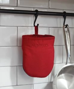 PADERNO Neoprene Palm Cotton Mini Oven Mitt With Hanging Loop, Non-Slip Grip, 1-pc, Red/Grey