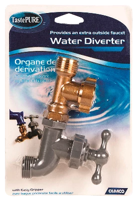 - Water Diverter provides an in-line faucet to your water service at the campsite