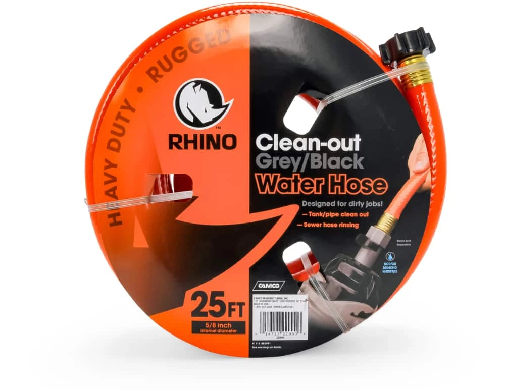 - Camco RhinoFLEX Grey & Black Water Hose keeps contaminants separate from your drinking water hose and garden hose