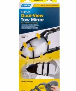 - Camco Towing Mirror Clamp On Double makes driving while towing safer and giving you peace of mind