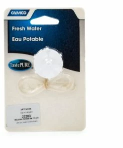 - Easily drain your RV fresh water tank with the Camco 3/4″ Female Cap with Lanyard