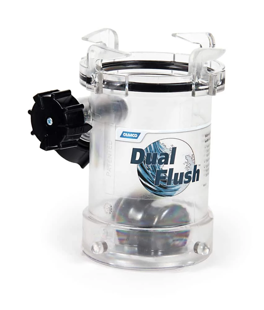 - Dual Flush RV Cleaning Connection sprays water into sewer hose lines to clear out clogged pipes with two-way jet cleaning action