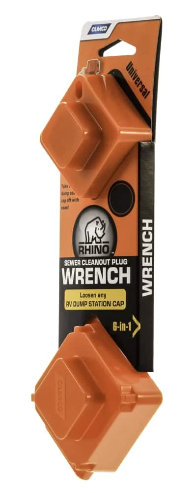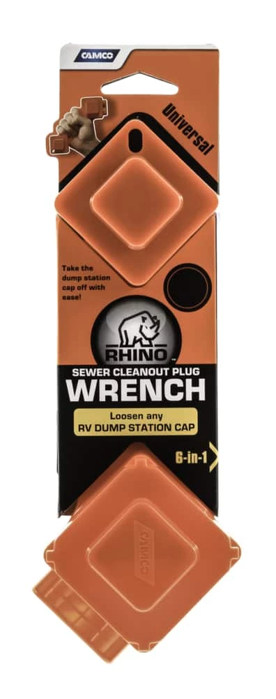 - Camco RV Rhino Flex Sewer Cleanout Wrench Kit features a universal wrench that makes opening any cleanout plug easy