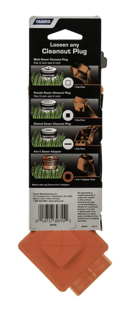 - Also works with Camco 4-in-1 drain adaptors