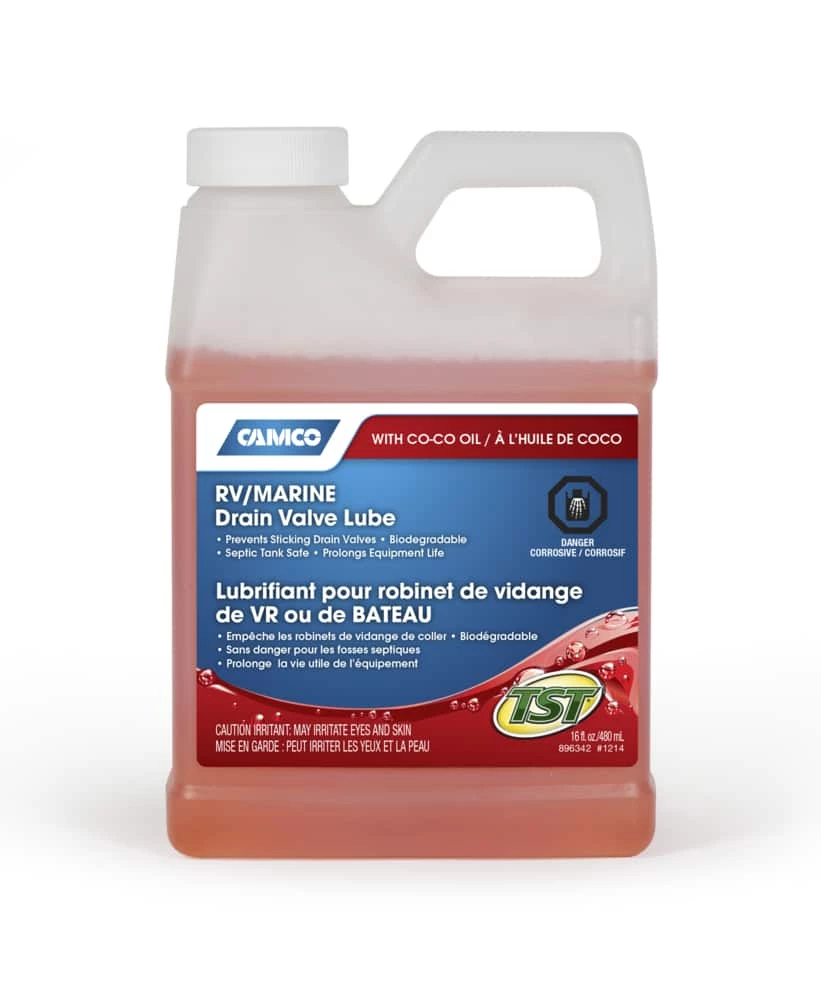 - Camco RV Drain Valve Lube provides lubrication for plumbing components and shutoffs to prevent sticking valves for prolonged life