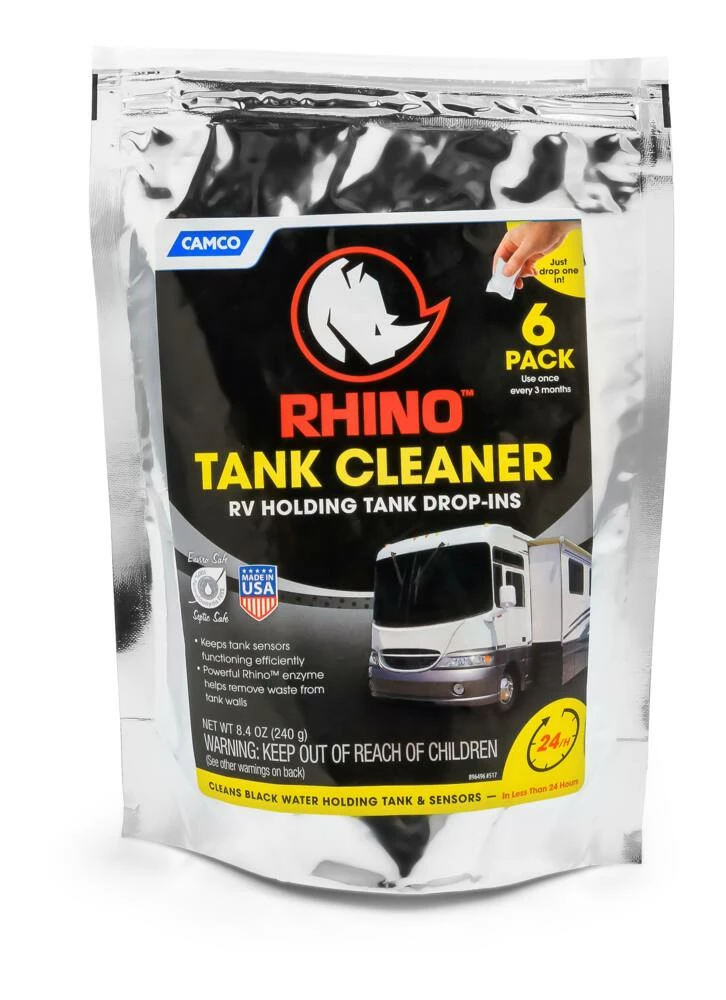 - Camco Rhino Holding Tank Cleaner Drop-Ins feature a powerful enzyme that helps clean holding tanks and removes waste from tank walls in less than 24 hours