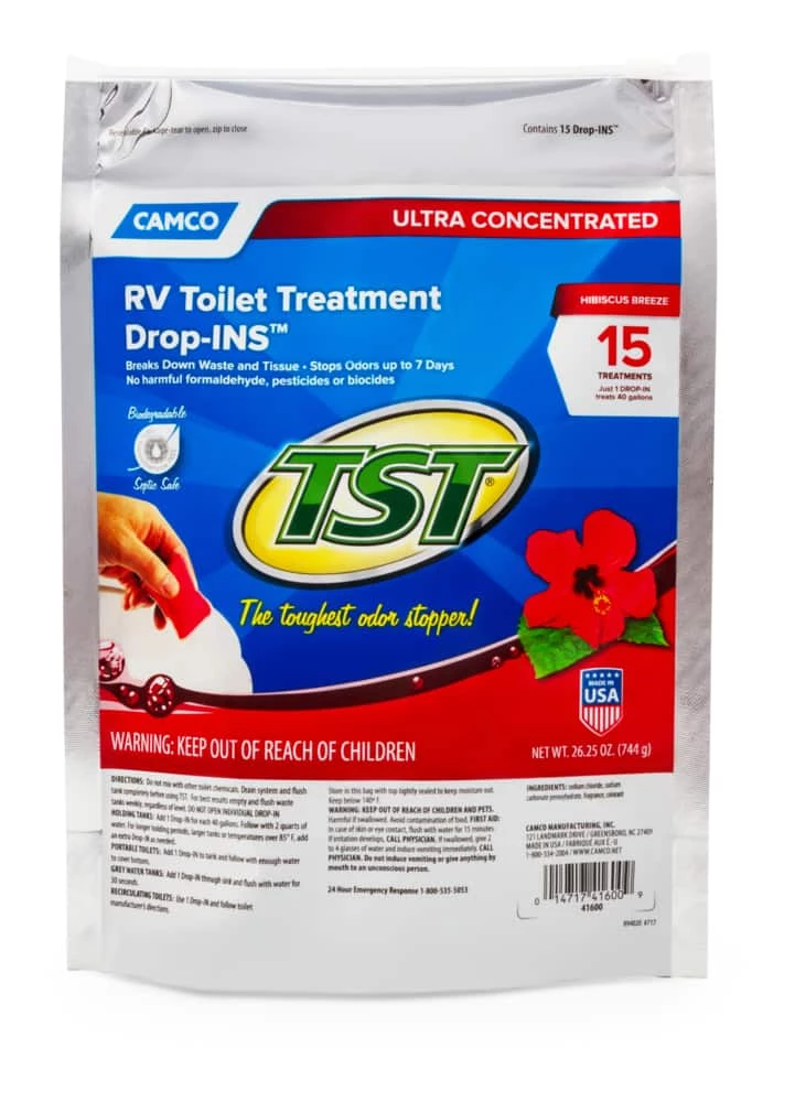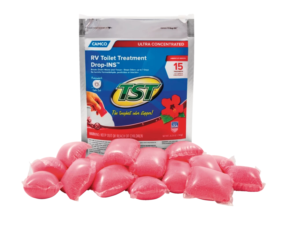 - Camco TST Drop-INS Holding Tank Treatment helps control unwanted odors and breaks down waste and tissue in black water holding tanks