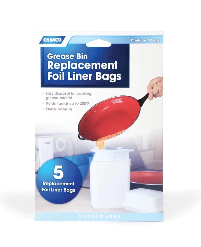 - Camco RV Replacement Bags For Grease Bin holds liquids up to 200°F