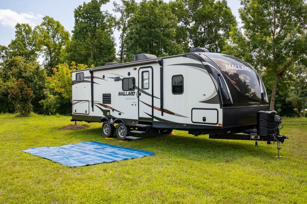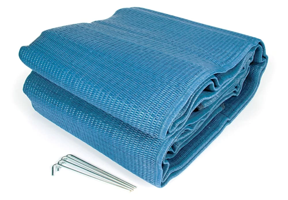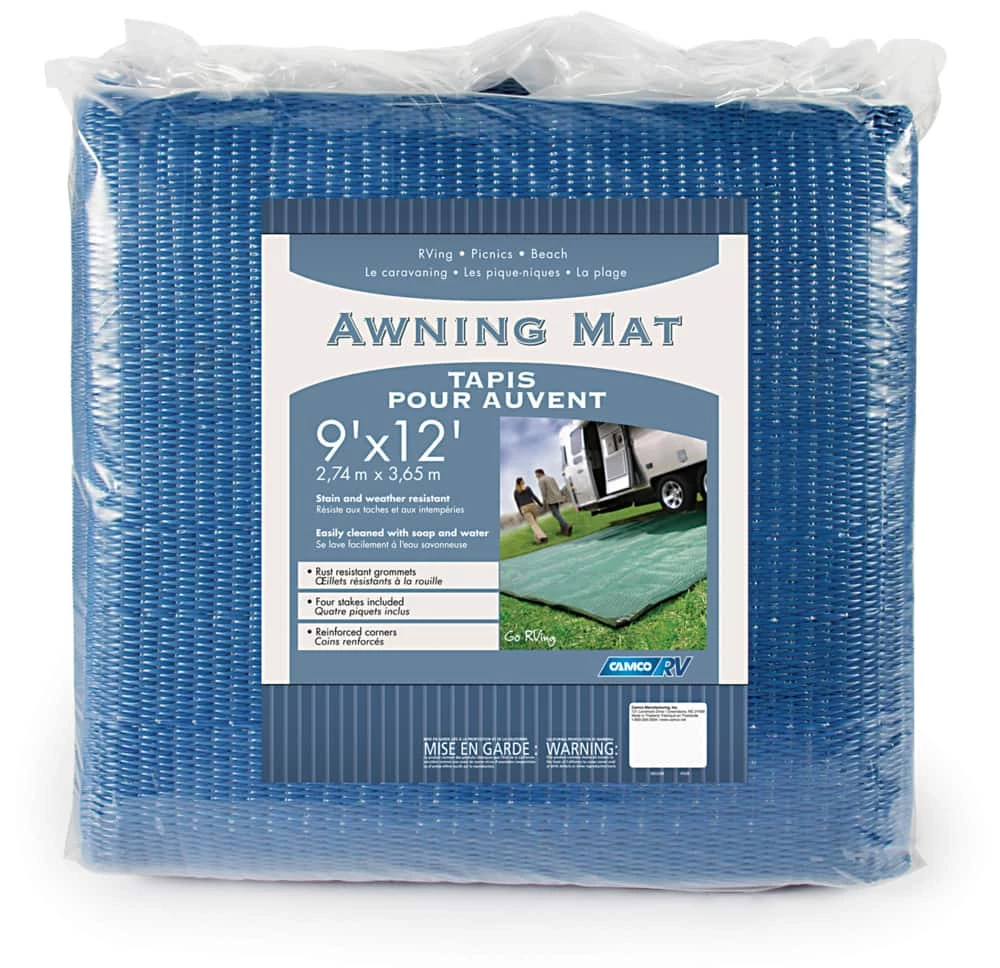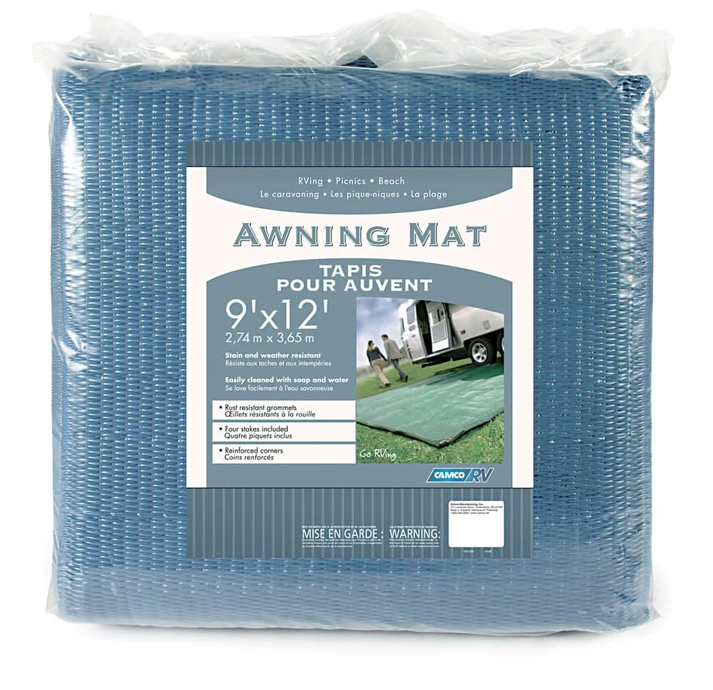 - RV Outdoor Awning Leisure Mat is made of durable, mildew resistant materials