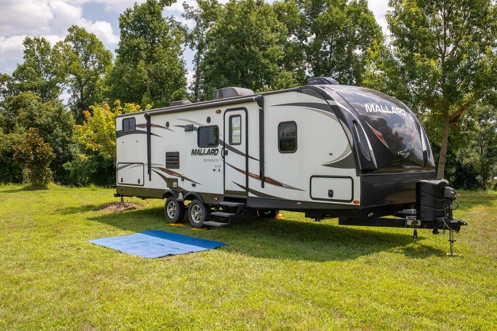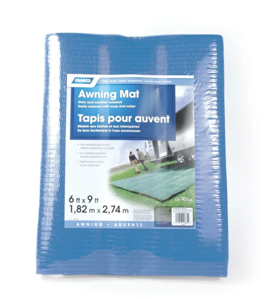 - RV Outdoor Awning Leisure Mat is made of durable, mildew resistant materials