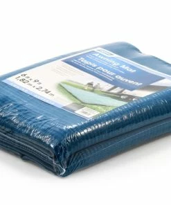 - Blue tarp is 6 x 9′ (1.8 x 2.7 m)
