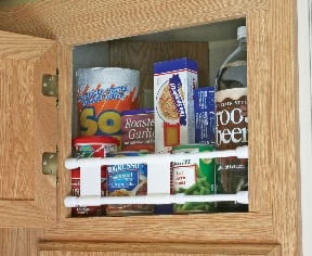 - White cupboard bars help you keep order in your RV cupboards during travel