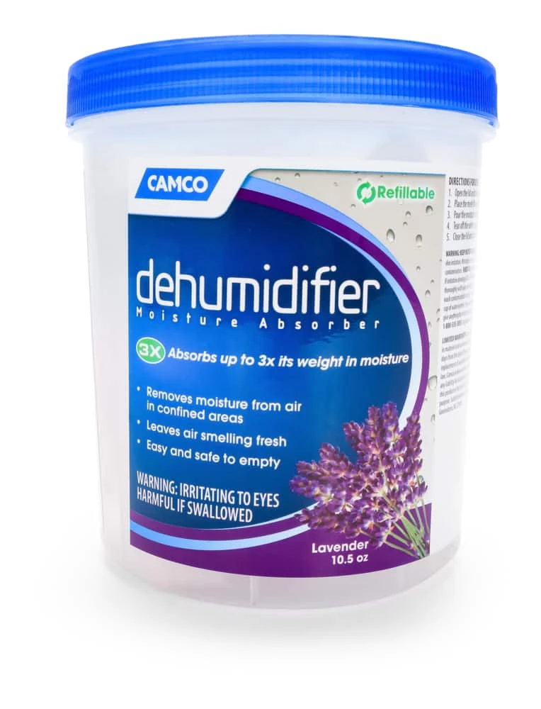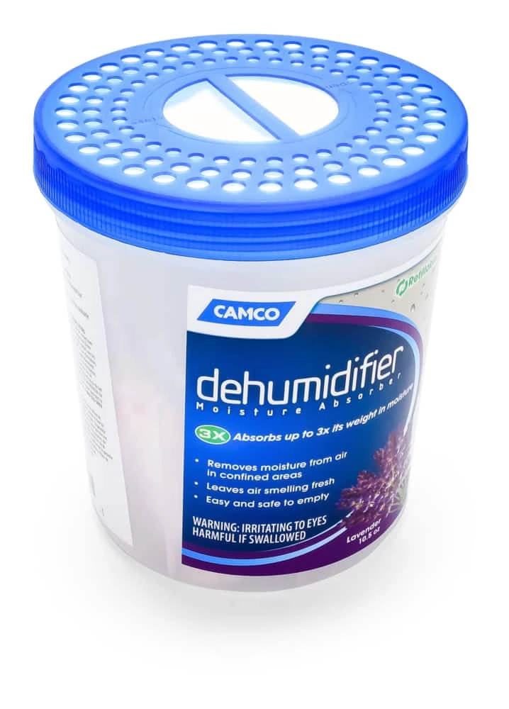 - Camco Dehumidifier is a compact solution to remove moisture from your RV, boat, or any other confined area