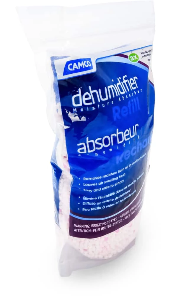 - Remove moisture from the air and reduces overall humidity in confined areas Camco RV Dehumidifier Refills
