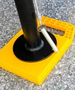 - Universal fit top, space saving handle, and tethered pin