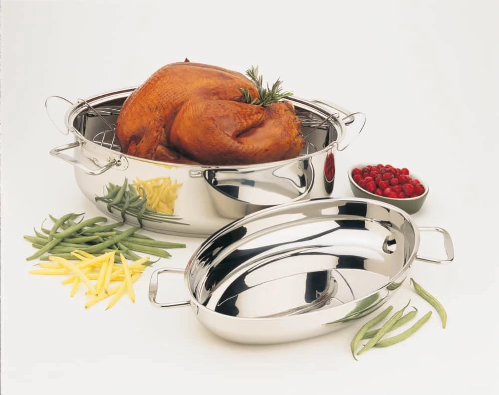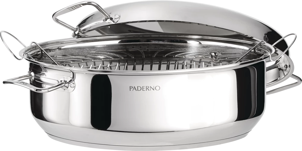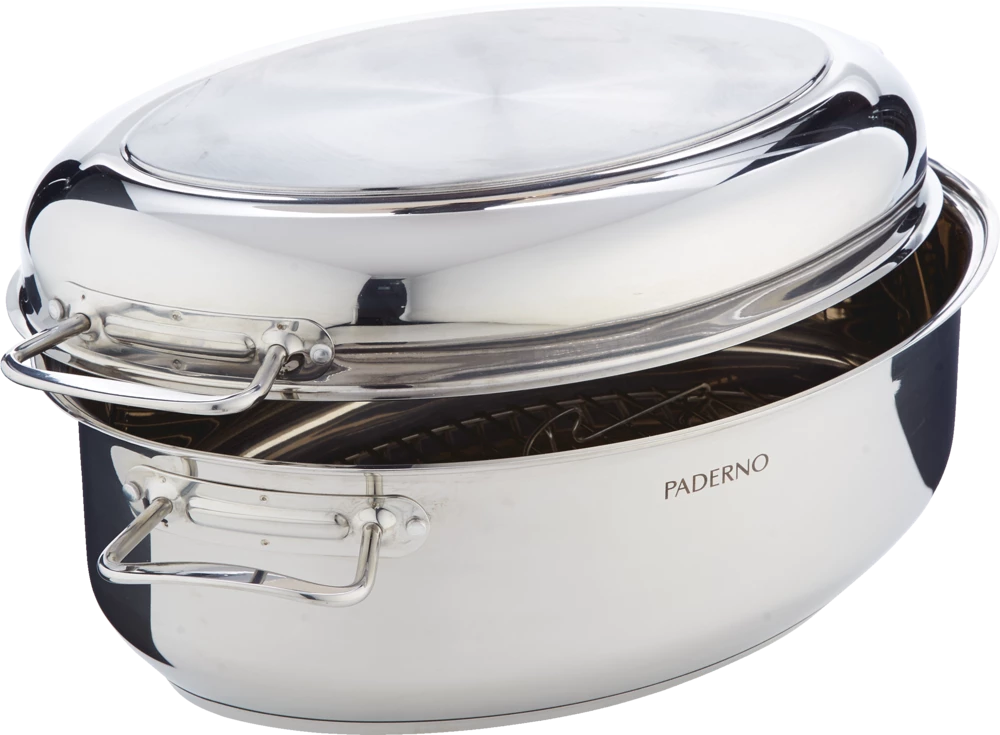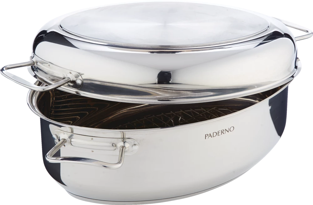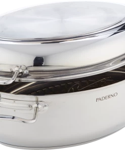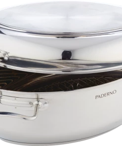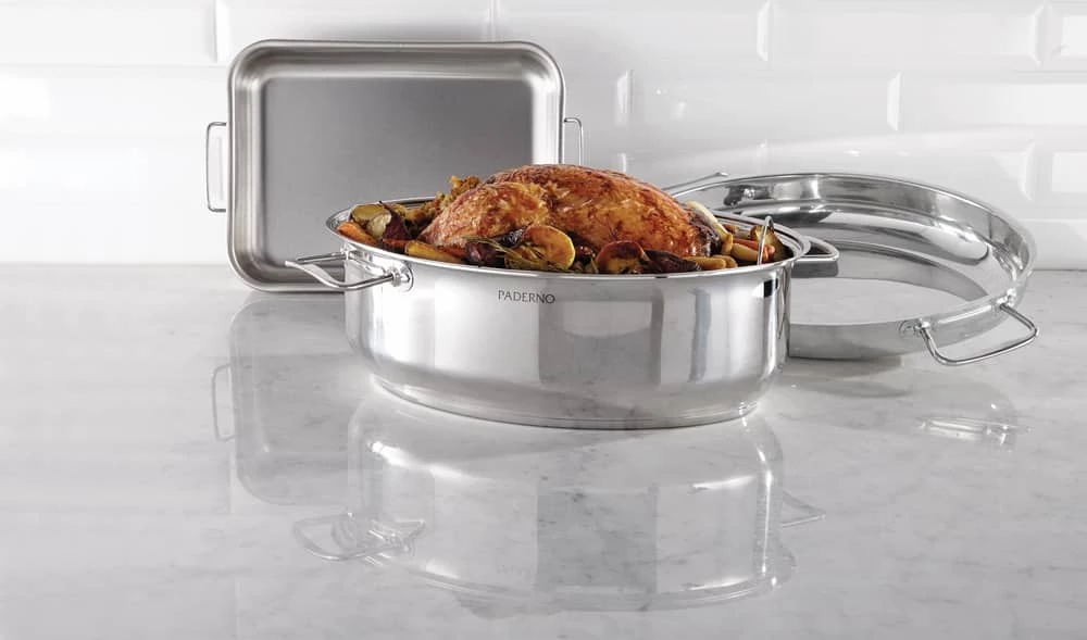 - PADERNO 18/10 Stainless Steel Multi-Roaster with Removable Rack features a versatile, 2-in-1 design for cooking delicious meals to perfection