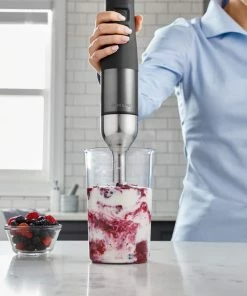 Making your favourite recipes has never been easier thanks to this PADERNO 2-Speed Corded Vortex Blade Hand Blender. It has the power to easily puree, chop, blend, and whisk any number of beverages, sauces, soups, and more. This handheld blender has two speeds of control, so you can adjust your speed to accommodate whatever tasks you have in mind while achieving the consistency you need. The blender attachment is ideal for chopping and pureeing to make chunky sauces or thick soups, while the whisk attachment whips egg whites or cream. The ergonomic grip provides comfort where it’s needed, especially for long days in the kitchen. You’ll also appreciate the Vortex Blade Technology, which is designed to circulate your food as you blend, so you can enjoy consistent results. This immersion blender is made from BPA-free plastic and stainless steel. Its black finish will blend in well with the rest of your kitchen décor.
