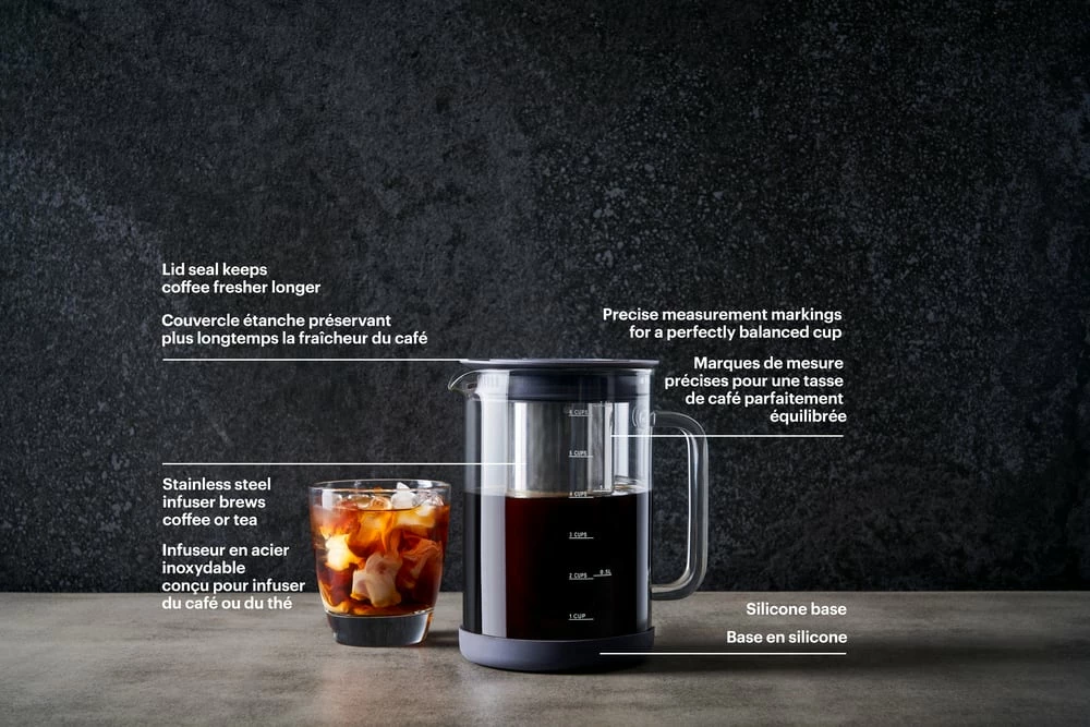 - Precise measurement markings on the carafe provide a perfectly balanced cup of cold brew coffee