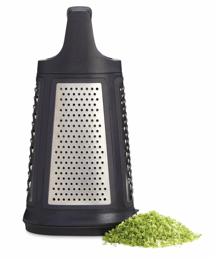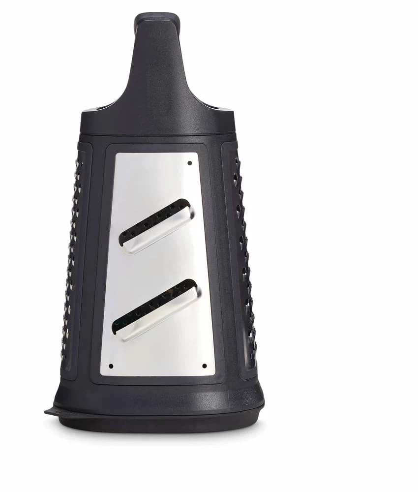 - Removeable non-slip base catches food while grating and reduces clean-up