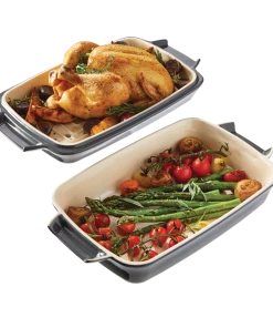 - One roaster has raised ribs, perfect for grill marks on meat, fish and tofu