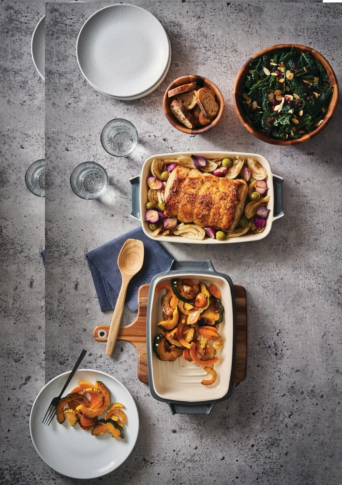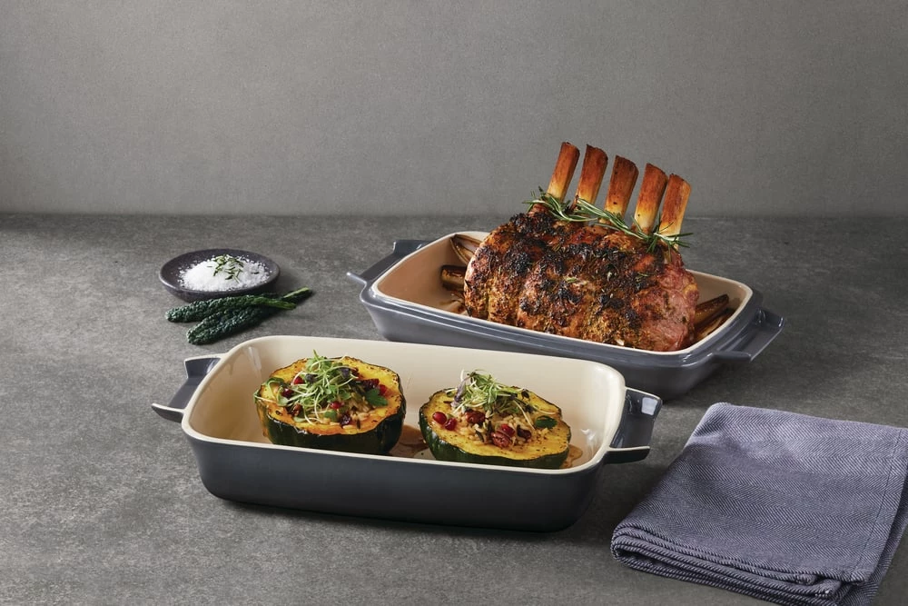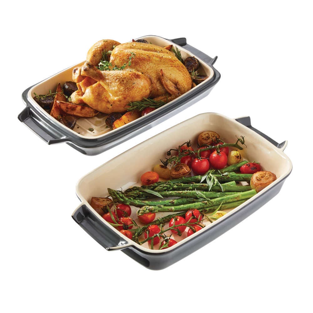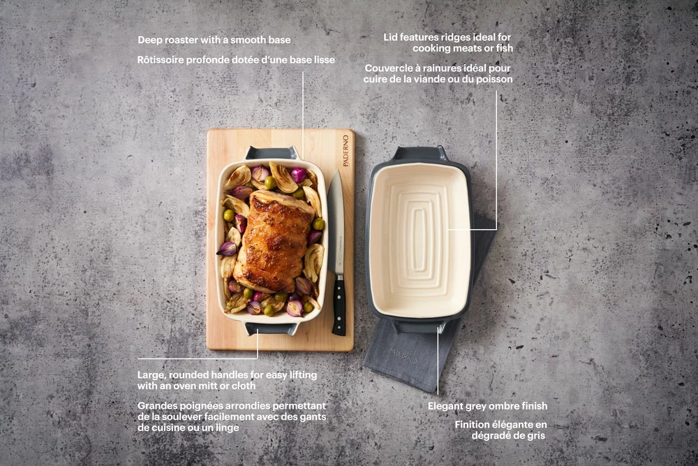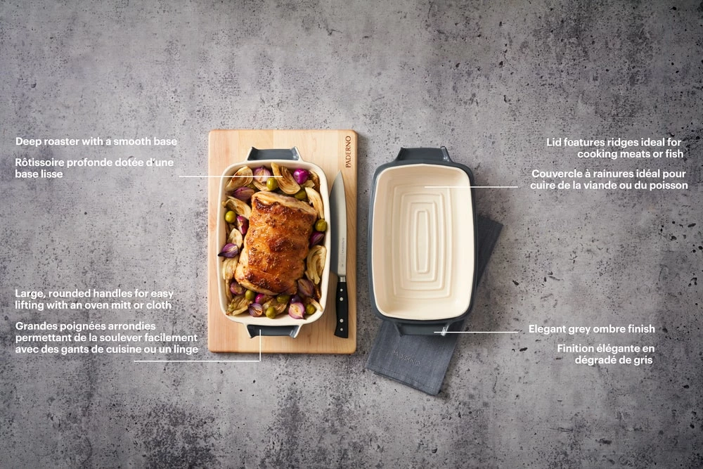 - PADERNO Ceramic Roaster Bakeware Set is made from high-fired ceramic stoneware for superior heat retention, durability and even cooking