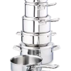 - Set includes: 0.9 L (1 qt) Saucepan with lid, 1.9 L (2 qt) Saucepan with lid, 2.8 L (3 qt) Saucepan with lid, 4.7 L (5 qt) Dutch Oven with lid, 2.8 L (3 qt) Sauté Pan with lid, 21.5 cm (8.375″) Fry Pan, 1.9 L (2 qt) Steamer Insert