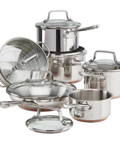 - PADERNO Copper Core Stainless Steel Cookset includes an assortment of pots and pans for all your cooking needs