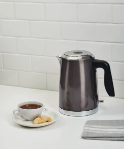 For faster boiling times when making your favourite tea, coffee, cocoa, or any other hot beverage, you can’t go wrong with the PADERNO Cordless Electric Kettle. It has a powerful heating element that will take your water from cool to boiling in minutes, allowing you to quickly enjoy your favourite hot drinks, soups, and more. You’ll get a front row seat of the magic thanks to a clear viewing window with measurement markings that also allow for more precise filling. The opening at the top is extra-large, so you can fill the electric kettle without a mess. It also features a non-drip spout for safer pouring of boiling liquids. When the water level gets too low, the kettle automatically shuts off to help prevent damage to the unit. For your safety and convenience, this tea kettle also has a one-touch button to softly open the lid when refilling and a soft-grip cool-touch handle. A black stainless steel finish completes the design with a look that easily complements most contemporary kitchen appliances while also looking great with more traditional or retro homes.
