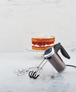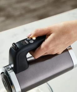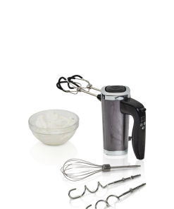 Bake, whip, or cream your favourite foods with this PADERNO 10-Speed High Power Hand Mixer. It has a powerful motor along with a range of attachments, so you can accomplish any cooking task with ease. Choose from 10 variable settings to get the consistency you need, whether you’re whipping cream or making the perfect mashed potatoes. The hand blender features a digital timer so you can easily see how long you’ve been mixing. An ergonomic handle and controls provide superior comfort you can feel, especially when you spend hours in the kitchen. You’ll find this electric mixer features a number of useful attachments, including silicone-coated beaters which are safe for non-stick cookware, dough hoods for mixing and kneading doughs for bread or pizza, and a whisk attachment that whips cream or egg whites to fluffy perfection. Add to this a sleek black stainless steel finish, and you have the ideal electric hand mixer for virtually any home chef.