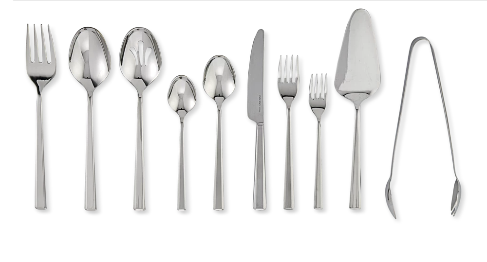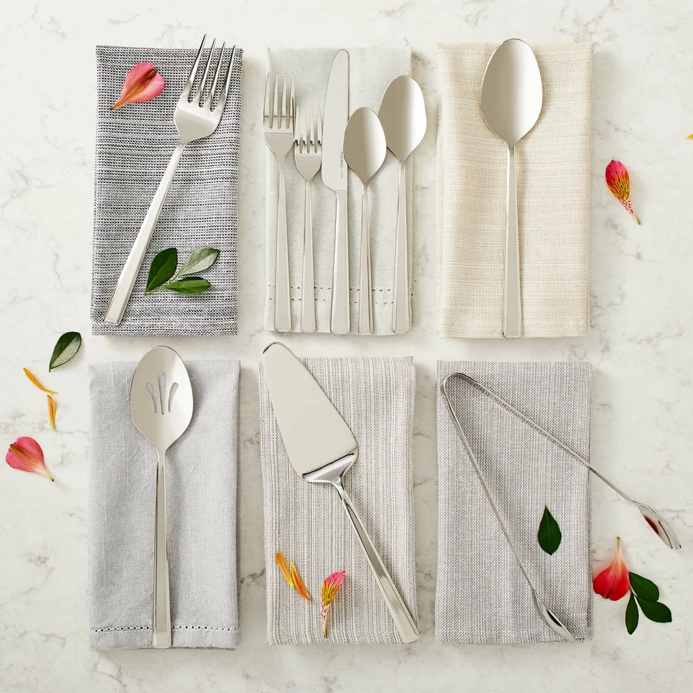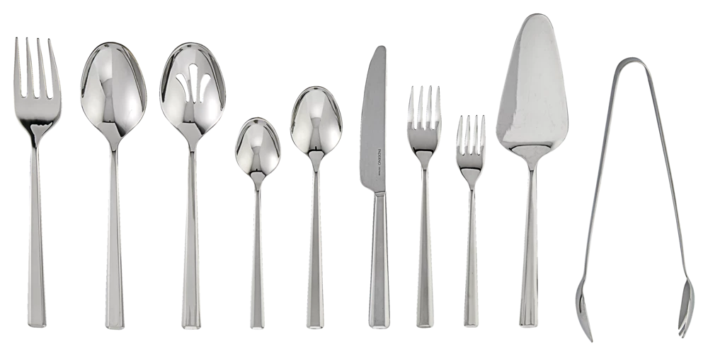 - Pieces Included: Cake Server, Dinner Fork, Dinner Knife, Dinner Spoon, Salad Fork, Serving Spoon, Teaspoon, Serving Fork, Tongs