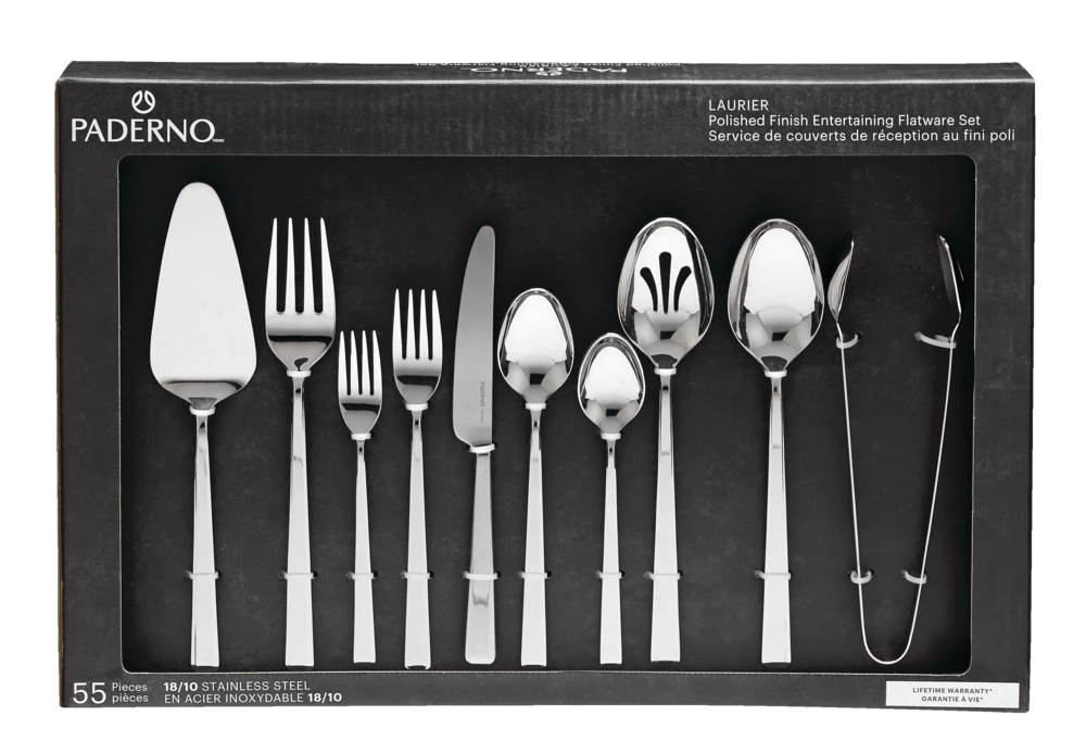 - PADERNO Laurier Polished Entertaining Flatware Set is perfect for casual, everyday use or for dinner parties