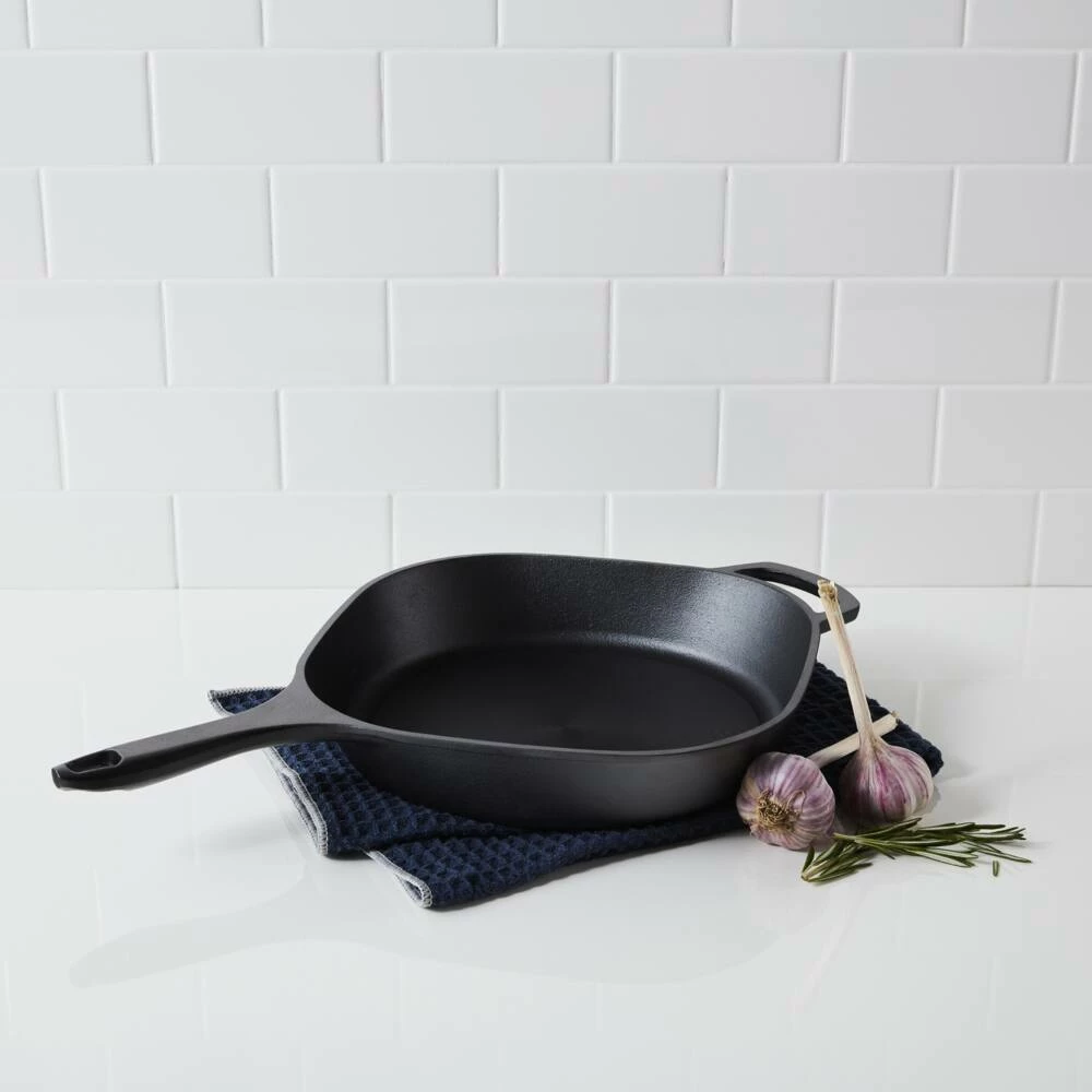 - NOTE: This cast iron skillet is pre-seasoned during production. For optimal performance the skillet will require re-seasoning before its first use. Please see our use and care instructions for directions on how to re-season your skillet.