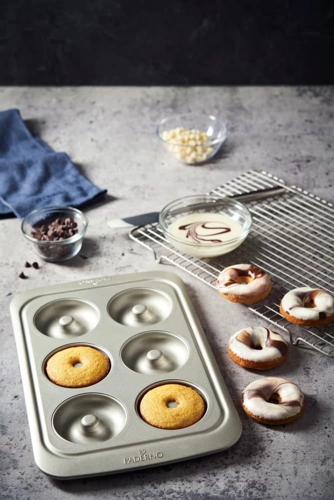 - Treat yourself to homemade donuts with the PADERNO Professional Non-Stick Donut Pan