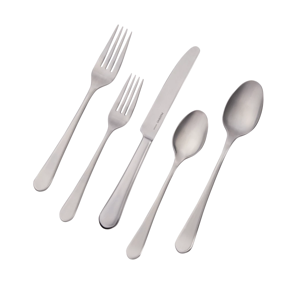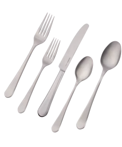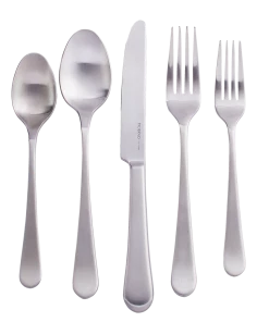 - Place setting includes a dinner knife, dinner fork, salad fork, dinner spoon and dessert spoon