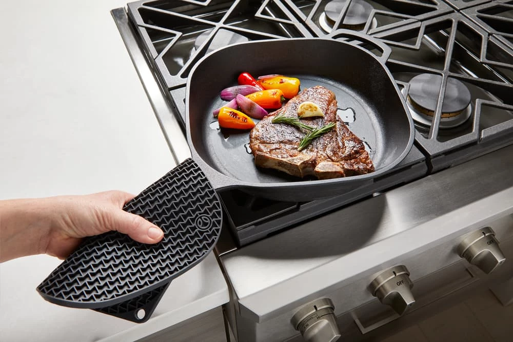 - Ribbed texture provides a secure grip and protection from heat