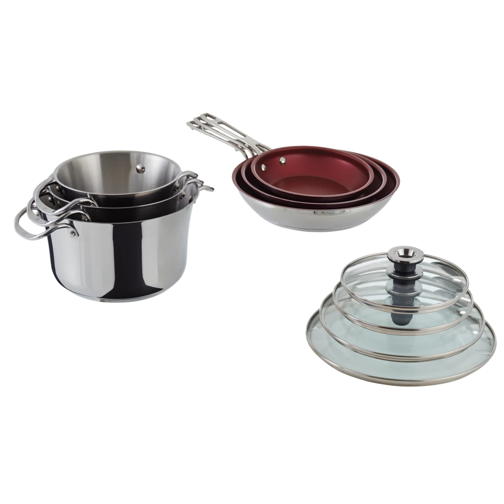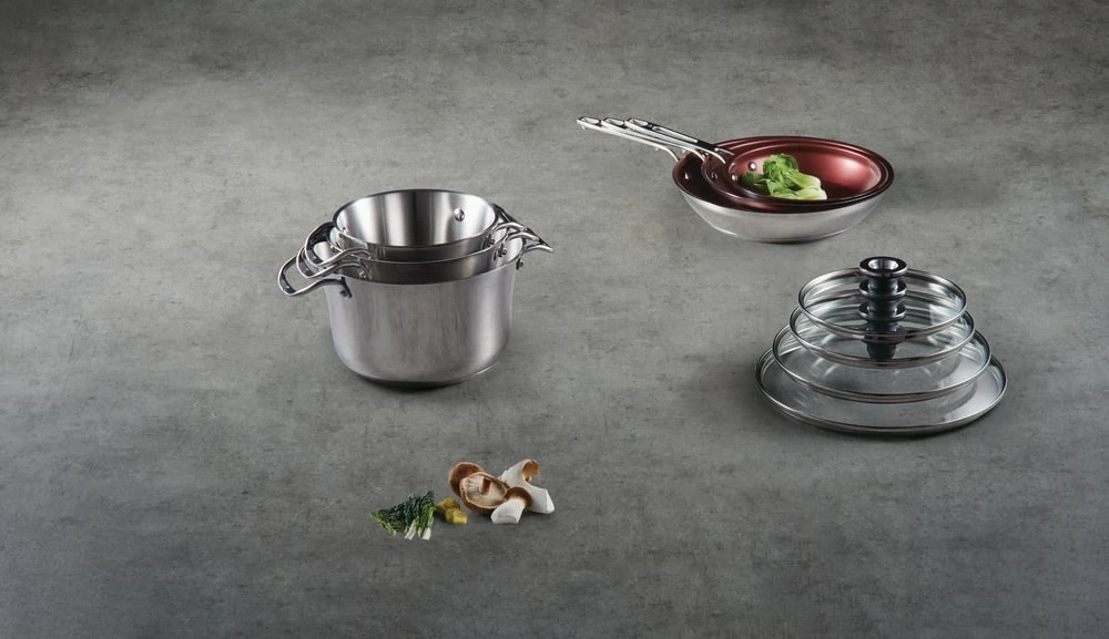 - The PADERNO Signature Stacking Stainless Steel Cookware Set takes up to 55% less space when stacked