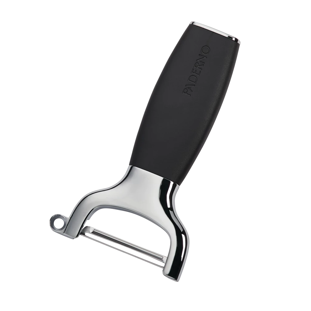 - PADERNO Horizontal Y-Peeler features a sharp, stainless steel blade designed to quickly and easily peel without excessive food waste