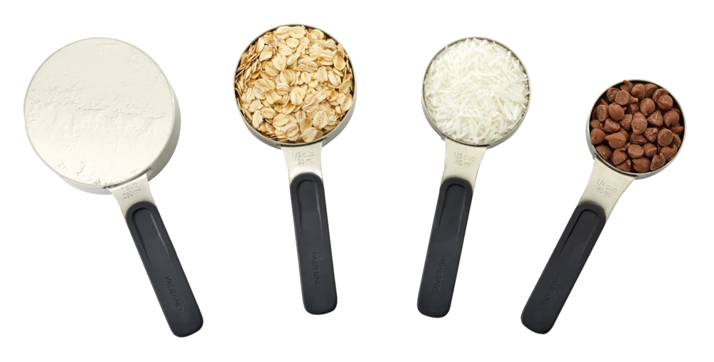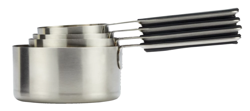 - 4 piece set includes: 1/4 cup, 1/3 cup, 1/2 cup and 1 cup sizes