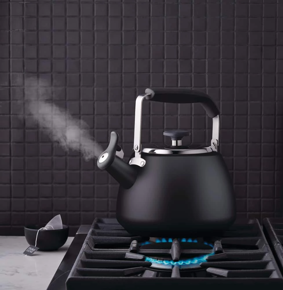 - Clear whistle indicates when water has boiled